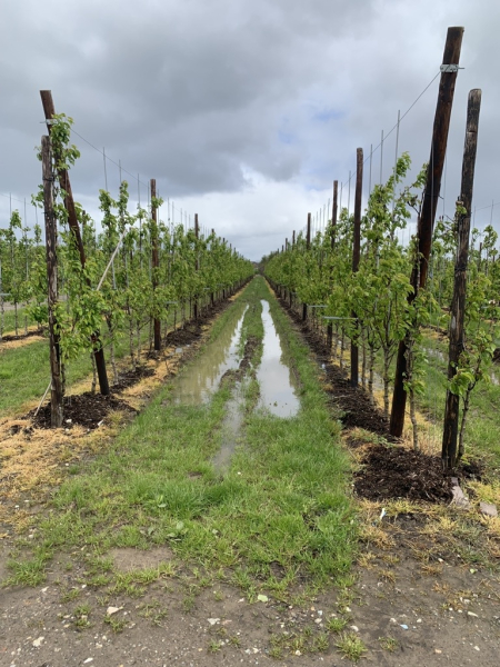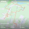 De geplande route terug naar de kerk ging niet. Er stond veel te veel water in de tractorsporen om langs te kunnen. Via Smidsgedoe en de Veerweg waren we iets voor half, 6.8 km later weer bij de kerk.