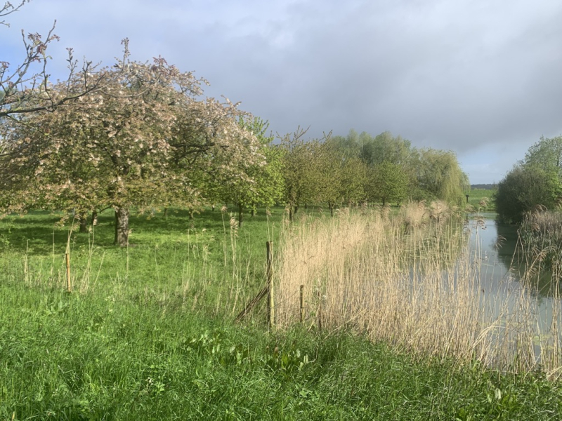 20-04-2024Bijna traditiegetrouw moest de paraplu ook weer mee. Vijf wandelaars gingen in de regen van start. Via de Heerlijkheid aan de Veerweg naar Huize Wiel. Daar scheen de zon met mooie Hollandse luchten. Er werd wat verteld over de geschiedenis van het “kasteeltje” en de relatie Adam van Delen en zijn afbeelding op de kansel in de st. Annakerk. Na een paar schitterende knotwilgen gefotografeerd te hebben gingen we de dijk op. Een heel mooi uitzicht over de uiterwaarden en de Utrechtse Heuvelrug. Bij het Veerhuis werd gekeken naar wat bevers aan gaan richten op de oude ijsbaan op de Oude Rijn.